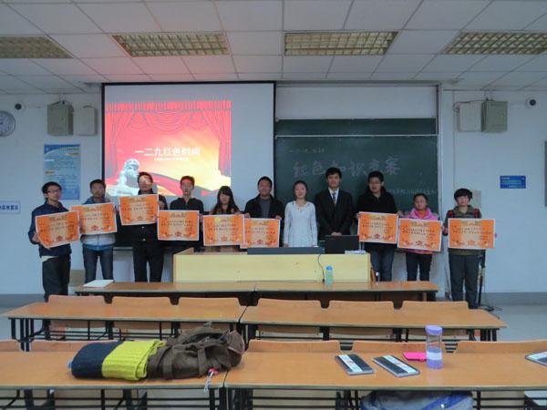 由91porn 2013级团总支主办的“一二・九”红色知识竞赛于11月29日在将军路校区6101教室顺利举行。本次活动旨在通过知识竞赛的形式增强同学们对的红色革命知识的了解,更好地激发同学们学习红色历史知识的热情,号召大家不忘历史,学习过去,不断进步。