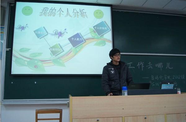 交流会分为职业规划交流、模拟面试体验两个环节。首先,每位同学利用PPT从四方面展示了自己的职业规划书:一、心仪的工作单位及具体岗位;二、描述企业人才模型及岗位应聘要求;三、分析自己和工作要求的差距;四、制定大二、大三学年发展计划,形成自己的职业规划书。交流中,很多同学青睐外企、电力公司等单位,但大多数同学反映这是第一次认真思考自己具体的求职目标,之前很少会关注企业的招聘要求。随后,辅导员韩楚为大家介绍了自动化相关专业毕业生可以去哪些单位,包括核电类、电力公司类、调度类、电科院类、电力设计院类、外企类等十类主要就业单位。同时,韩楚指出,尽早明确理想、规划自己的人生,能够帮助我们塑造清新充实的自我,进而提升自我的职业素养和职业竞争力。
