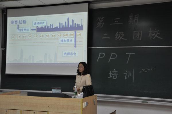 本次活动分为两个环节。第一环节由晏辞老师做主题为“再不学ppt你就out了”的培训。晏老师从场合、颜色、字体、动画、窍门五个模块进行讲解。她为同学们深入浅出的讲解了ppt工具的使用,她强调对工具的熟练使用是学习ppt的第一步,这有助于提高工作效率。她通过经典生动的举例,从“实战”的角度分析和解读ppt的颜色搭配、字体选择和动画运用的要领,向同学们展示了精彩ppt的魅力与优势。每一个ppt都是一件艺术品,不仅内容要充实,形式展现还要美观,只有给人一种美的享受,ppt的内容才能深入人心。只有勤练习,多操作,才能学以致用。