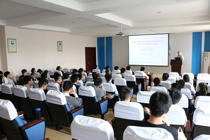 4月11日, Liang Feng博士在91porn 3号楼报告厅做“Challenges and Opportunities for Electric Machine R&D”学术报告,91porn 近百名师生参加了报告会。报告从新能源汽车驱动电机的基本原理、特性和要求出发,分析新能源汽车驱动电机的转矩-功率特性,提炼出新能源汽车驱动永磁电机的高效率、转矩密度提升及振动噪声等核心问题,并介绍了福特公司研发团队在效率提升及转矩脉动抑制等领域取得的诸多研究成果和创新思想。报告会持续3个多小时,极大拓宽了师生对于新能源汽车驱动系统的认识和视野。