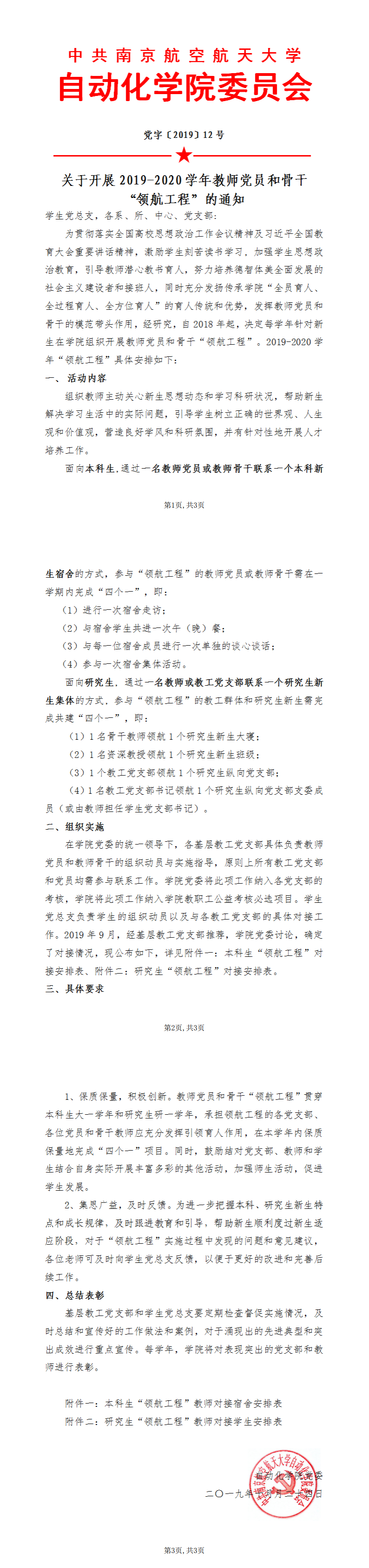 关于开展2019-2020学年教师党员和骨干 “领航工程”的通知