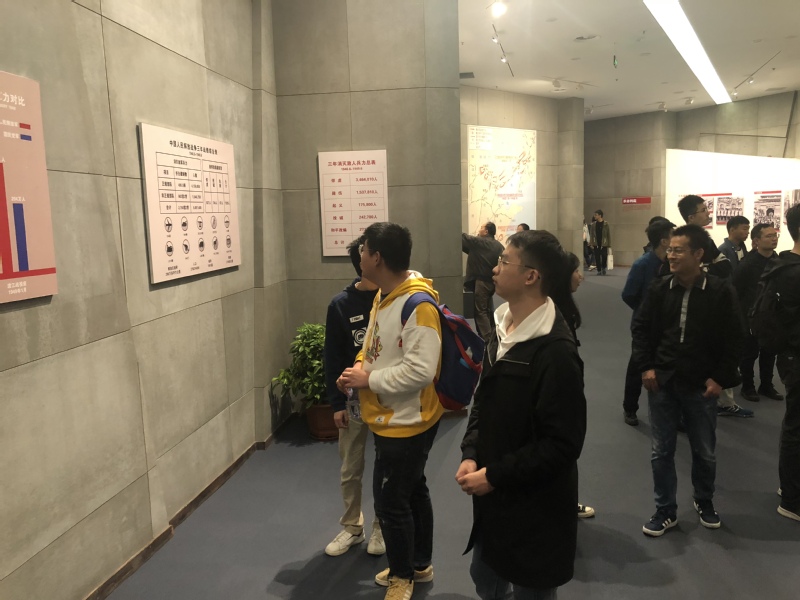 通过参观主馆区前三个展区,发展对象们重温了渡江战役的全过程,了解了革命先烈的壮烈事迹;观看陈列的枪炮弹药、衣物鞋帽、文件器具等革命烈士生前使用过的物品;感受着声、光、电等现代科技重现“钟山风雨起苍黄,百万雄师过大江”的壮观场景。在后两个展厅,以图片展的形式也让我们看到了渡江战役、解放南京以来,中华人民共和国在党的领导下从“站起来”到“富起来”到“强起来”的过程,发展对象们认真观看图片展后,纷纷感慨当下幸福生活来之不易。