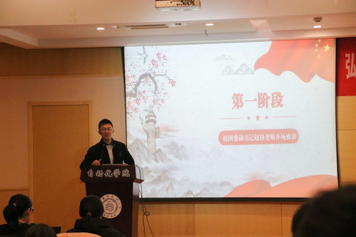 活动初始,校团委副书记赵铮致辞。赵书记从团干应具有的身份意识、成果意识、标杆意识三个意识处着手,给团干代表们提了意见和要求,希望团干们能规范自身行为,成为更优秀的人才。
