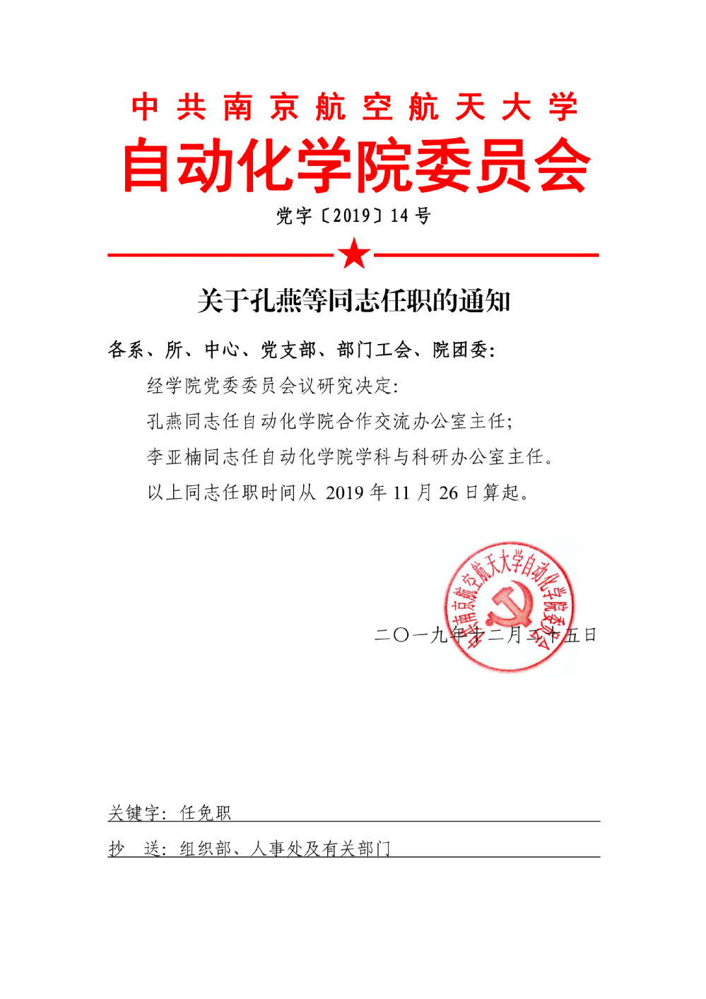 关于孔燕等同志任职的通知