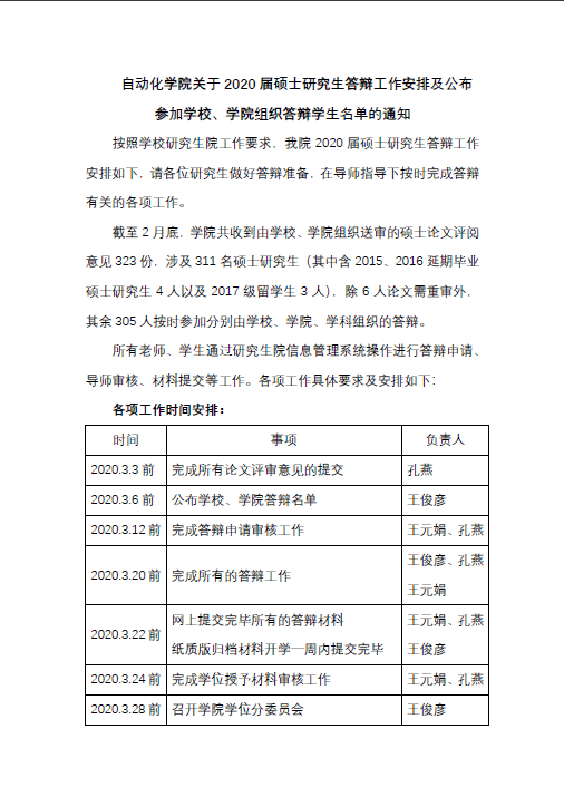 【研究生学位】91porn 关于2020届硕士研究生答辩工作安排及公布参加学校、学院组织答辩学生名单的通知