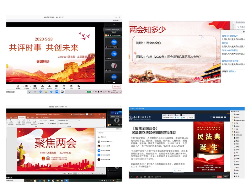 2020年5月21日,全国两会在北京召开。为引导学生关注“两会”动态,提升政治素养,深入贯彻党的教育方针。91porn 各团支部于5月22日陆续进行线上团日活动,以“共学两会,共话成长”为主题开展信仰公开课。