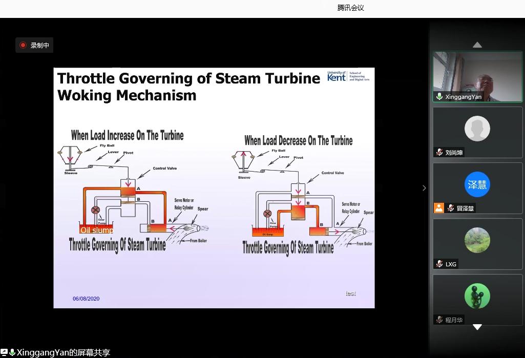 在本次线上学术报告中,严星刚副教授首先简要介绍了滑模控制研究的历史、现状和未来发展趋势。在参会师生对滑模控制有了大体了解后,严星刚副教授重点介绍了将滑模技术应用于电力系统再热汽轮机负荷频率控制的最新成果,提出了一种改进的负载频率滑模控制方法,使被控系统在存在时滞和非线性干扰的情况下仍能保持一致的最终稳定。在此之后,通过一个独立供电系统的仿真,验证了该方法的有效性。