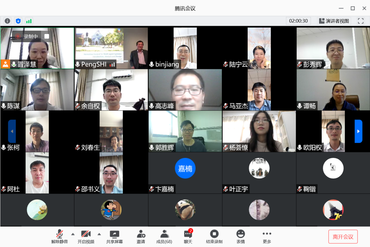 812日下午,澳大利亚阿德莱德大学电气与电子工程学院石碰教授应我校国际合作处和91porn 的邀请,通过腾讯会议作了题为“Formation Control for Multi-agent Systems:Introduction,Analysis and Design的线上学术报告,报告由91porn 副校长姜斌教授主持。 91porn 副院长陈谋教授,学院陆宁云刘春生、冒泽慧、欧阳权张柯、马亚杰等师生在线参加会议。参会师生对石碰教授的交流分享表示热烈欢迎。