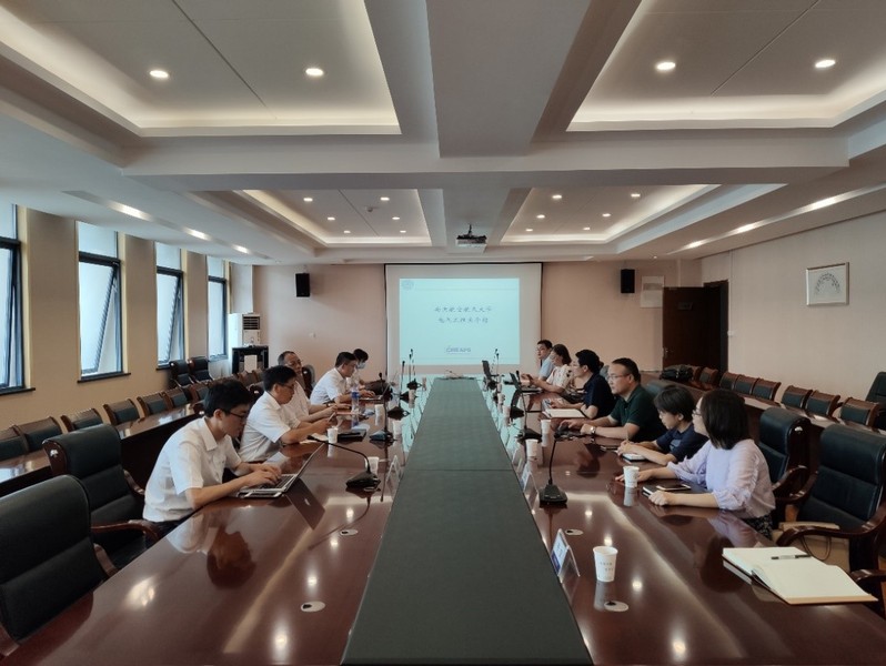 曹瑞武老师汇报了电气工程系的发展历程、师资队伍、人才培养、学科专业、科研成果等方面的基础与优势;王帮亭部长助理简要介绍了上飞院的组织结构、研究和型号任务,并对大飞机技术需求和发展方向作了详细介绍。