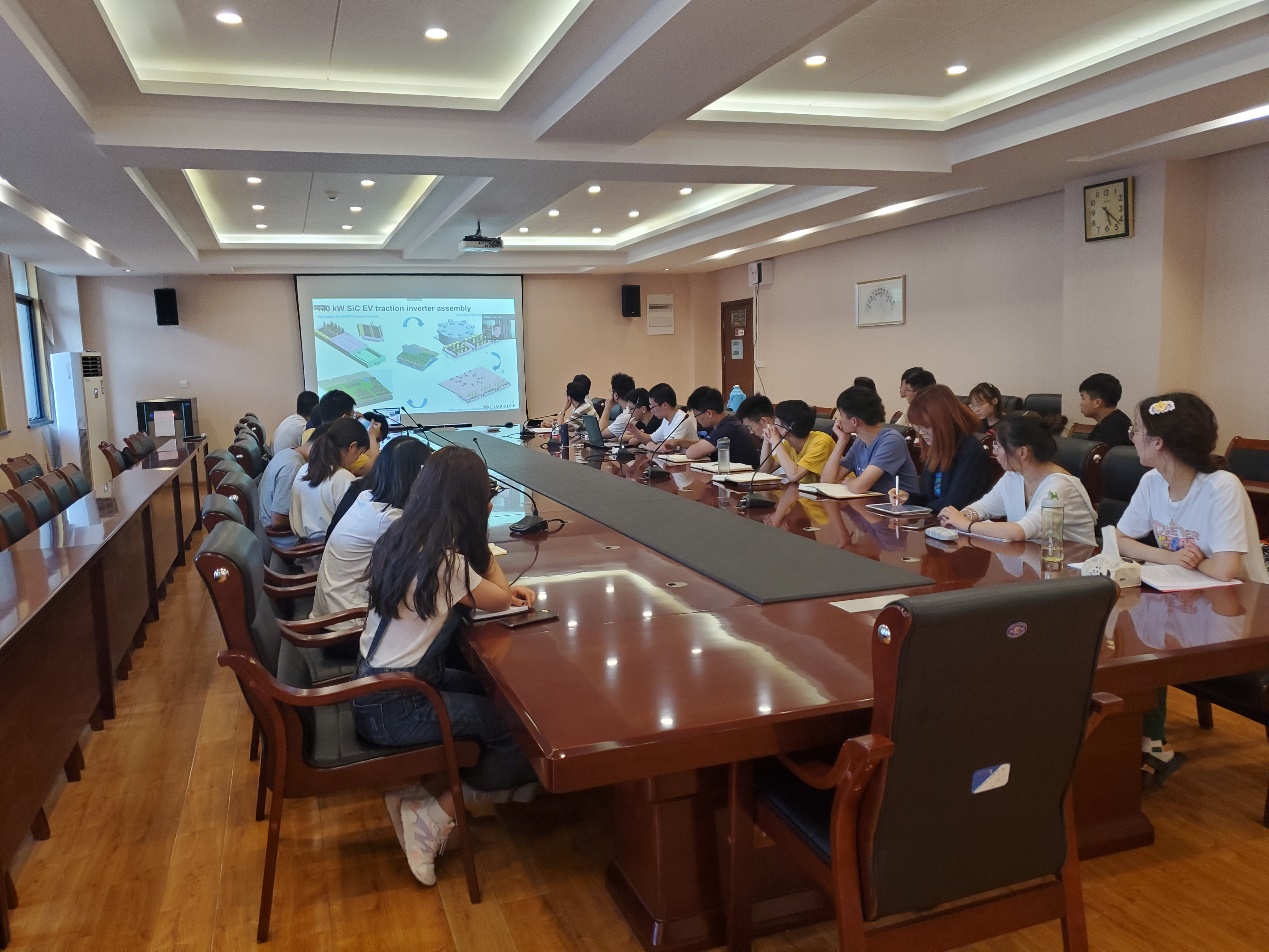 报告中,Long老师围绕碳化硅(SiC)等新一代宽禁带功率半导体器件在电动汽车电机驱动器、车载充电器中的应用特点,分享了利用SiC器件并联降低杂散电感、电容以减小开关损耗的方法,介绍了宽禁带器件在车载充电、无线充电技术方面的研究进展,并结合实践深入讲述了基于新型纳米晶合金的无线充电装置研制过程中面临的挑战,并提出了创新方法,让参与的师生受益匪浅。