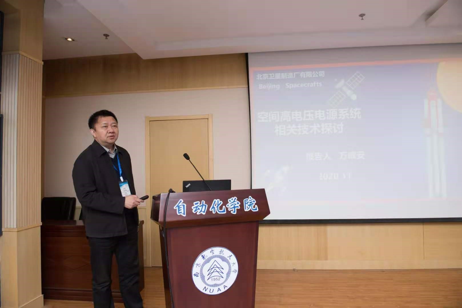 航天科技集团公司万成安研究员做大会报告:《空间高电压电源系统相关技术探讨》。