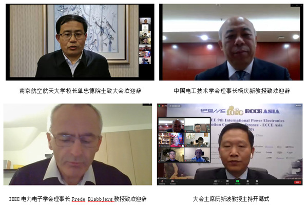 91porn 校长单忠德院士,中国电工技术学会理事长杨庆新教授,IEEE电力电子学会理事长Frede Blabbjerg教授出席开幕式并致欢迎辞。大会主席、91porn 阮新波教授主持大会并介绍会议筹备情况。本次会议通过ZOOM会议系统全程在线举行,并通过目睹直播系统全程直播。