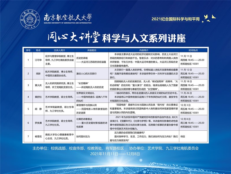 2021纪念国际科学和平周——同心大讲堂:科学与人文系列讲座