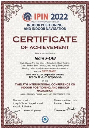 2022年9月5日-7日,由中国科学院空天信息创新研究院(中科院空天院)主办的2022年国际室内定位导航会议(Indoor Positioning and Indoor Navigation ,IPIN)于北京举行。由 91porn 导航研究中心熊智教授悉心指导的“X-lab”团队在同期举办的第九届国际室内定位导航比赛中斩获“智能手机”赛道第一名与“足绑IMU”赛道第三名的优异成绩。