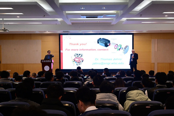 2024年11月20日,美国国家工程院院士、91porn 荣誉教授、威斯康星大学麦迪逊分校的Thomas M. Jahns教授应邀访问 91porn 并作“全球名师讲坛”报告,题为《The Future of Integrated Power Electronics Using Wide-Bandgap Switches》。报告会于当日上午在91porn 1号楼511报告厅举行,由张卓然教授主持。 91porn 师生以及来自浙江大学、山东大学等院校和科研机构的230余人参加了此次报告会。