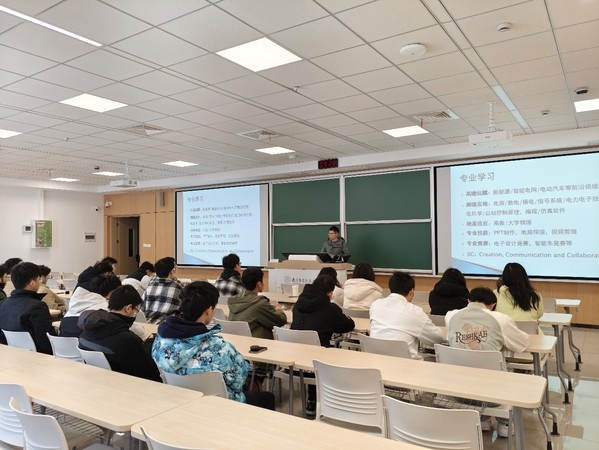 谢立宏老师结合绩点和具体课程成绩,分析了同学们第一个学期的学习状况,并提醒同学们将在春季学期迎来数门至关重要的专业课。他表示,同学们已经接触了高数、物理等根基科目,在新的学期更要脚踏实地学好电路、数电、模电等电气专业的基础课程,才能渐渐感受到电气专业的魅力;在此基础上,还要不断开阔自己的视野,积极接触当下流行的新能源、智能电网等行业前沿领域,为理想早做规划与打算。谢立宏老师提醒同学们,要牢牢把握住学校学院提供的专业竞赛的机会,积极锻炼自己的综合能力和实操能力,对于注重实践的电气专业来说,这些能力和专业课的成绩同样重要。