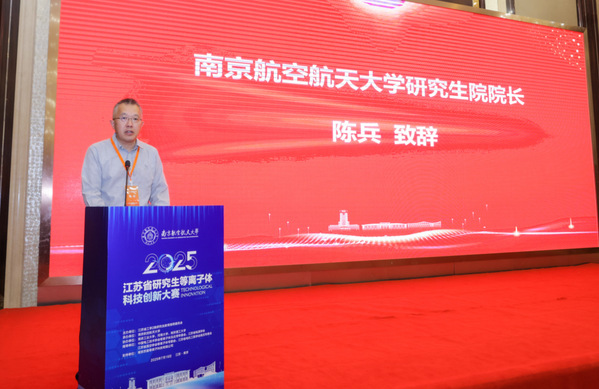 开幕式上,陈兵对各位领导和嘉宾的莅临表示热烈欢迎。他先介绍了学校在研究生科研创新实践领域的经验与成果,强调江苏省研究生创新实践大赛是我省培养研究生创新精神与意识的重要平台,期望参赛同学把创新创造精神融入研究生学习实践的全过程,更主动地将自身科学追求与建设社会主义现代化国家的伟大事业相融合,争当新时代科技创新的先锋,为建设“强富美高”新江苏、助力强国建设和民族复兴挥洒青春、贡献力量。