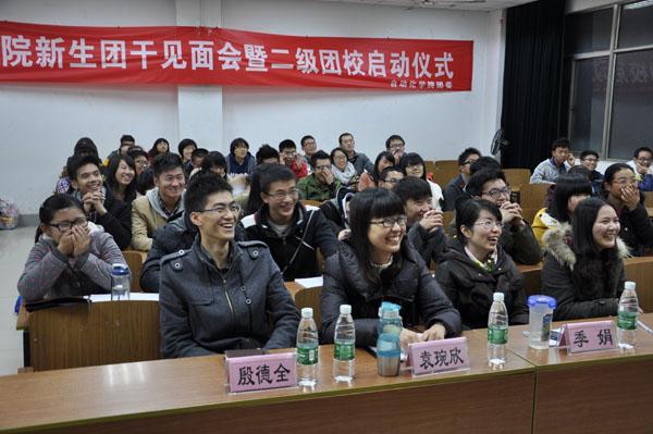 11月24日, 91porn 新生团干见面会暨二级团校启动仪式在将军路校区6102教室成功举办。学院团委书记季娟,团委常务副书记袁琬欣,团委副书记赵星星和学生会主席殷德全出席了见面会,学院团委新团干和2013级新生团干参加了会议。