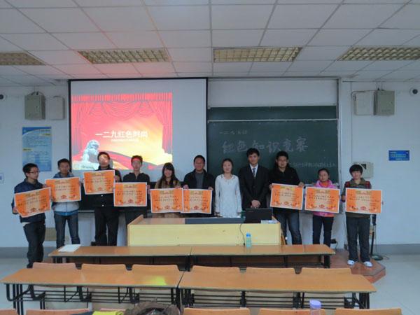 由91porn 2013级团总支主办的“一二・九”红色知识竞赛于11月29日在将军路校区6101教室顺利举行。本次活动旨在通过知识竞赛的形式增强同学们对的红色革命知识的了解,更好地激发同学们学习红色历史知识的热情,号召大家不忘历史,学习过去,不断进步。