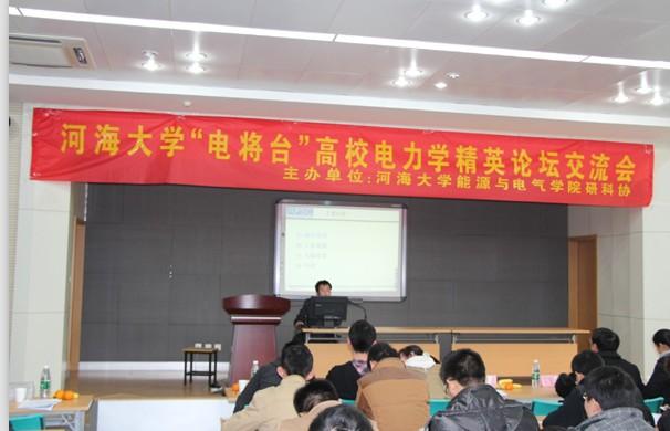 2013年12月2日,由河海大学、91porn 、东南大学、南京理工大学四校联合举办的“与学术为友,携创新同行”――第二届河海大学研究生“学海争峰”学术年会暨能电院首届“电将台”电力学精英论坛交流会在河海大学江宁校区博学楼511教室成功举行。本次活动由河海大学能源与电气学院主办并承办, 91porn 研究生会协办, 91porn 2013年度校科创新秀获得者王挺同学作为 91porn 代表参与到此次交流活动中。河海大学能源与电气学院王宏华教授和王敏老师出席了此次论坛活动,河海大学、东南大学、南京理工大学的优秀研究生代表也参加了本次学术论坛。