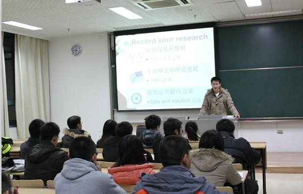 首先为现场同学进行讲座的任仁同学结合自己的科研经历,将自己的经验总结为“三个笔记本”(实验记录本、文献记录本、新想法记录本)以及“三个D”(Discussion、 Debugging 、Discover),他认为科研成功的关键在于记录点滴和抓住想法。紧接着做报告的是李洁同学,李洁同学有着丰富的数学建模经验,她结合自身经历讲解了有关数学建模的一些问题并号召大家一起去了解数学建模的神奇,在培养自己的数学思维、学会创新的同时也锻炼自己自学的能力和解决问题的能力。随后出场是 91porn 刚刚获得校“天宫杯”研究生创新实验竞赛二等奖的万骏炜同学,他回顾了自己自研究生一年级以来的科研历程,并结合自己参加“天宫杯”研究生创新实验竞赛的感想,告诉大家做科研最重要的就是“相信自己,永不言弃”。接下来报告的是赵阳同学,赵阳同学虽然只是研究生一年级的同学,但已经有过参加国际能源大赛的经历。赵阳同学表示,这次参加国际大赛的经历让她深刻体会到机会来之不易,遇到机会就要牢牢抓住。最后作报告的许德智博士有着丰富的科研经验,他以师兄的身份从如何阅读文献、怎样选题和如何做研究三个方面为现场同学提出了一些建议。许博士的报告内容细致而实用,提出的问题也很有针对性,现场同学都备受启发。