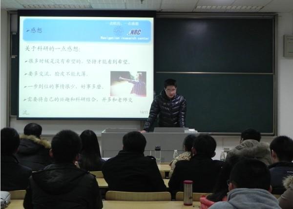 2013年12月10日晚6:30,由91porn 研究生会主办的“紫冬话坊”系列活动之“科研同路人”科创精英交流会活动在A18楼218教室顺利举行。本次活动邀请到 91porn 硕士研究生任仁、李洁、万骏炜、赵阳以及博士研究生许德智五位学术精英为到场同学们作报告,研究生辅导员刘斐文老师也莅临现场出席了本次活动。