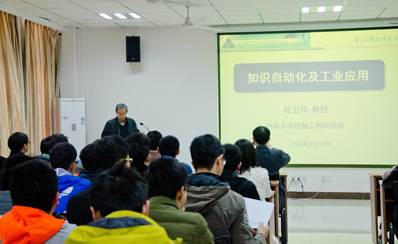 随后,桂卫华院士在将军路校区91porn 1号楼303报告厅做了题为“知识自动化及工业应用”的学术报告。报告由91porn 院长姜斌教授主持,91porn 百余名师生聆听了报告会。桂卫华院士以当前热点话题AlphaGo为引,介绍了工业生产过程知识自动化的内涵、指出了工业生产过程知识自动化的若干问题,并给出了相应的研究策略。报告过程中桂院士还详细介绍了自己近年来关于知识自动化方面的最新研究成果。聆听报告的师生纷纷表示受益匪浅,对院士的精彩报告报以热烈的掌声。