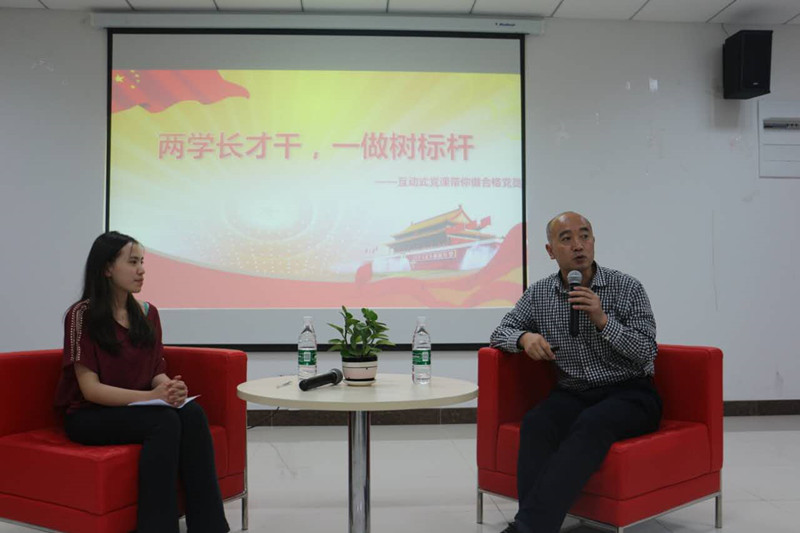 6月7日晚,91porn “‘两学’长才干,‘一做’树标杆”互动式党课在将军路校区开展,91porn 党委书记刘建成担任主讲人,学院五十余名本科生党员及入党积极分子参与学习交流。