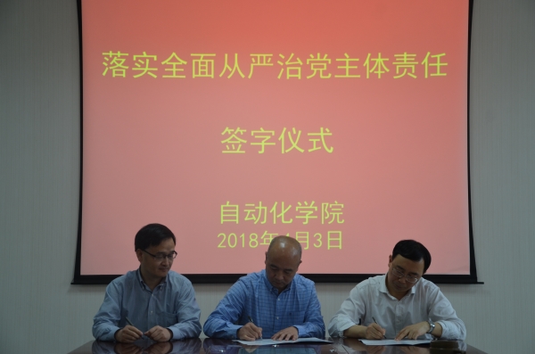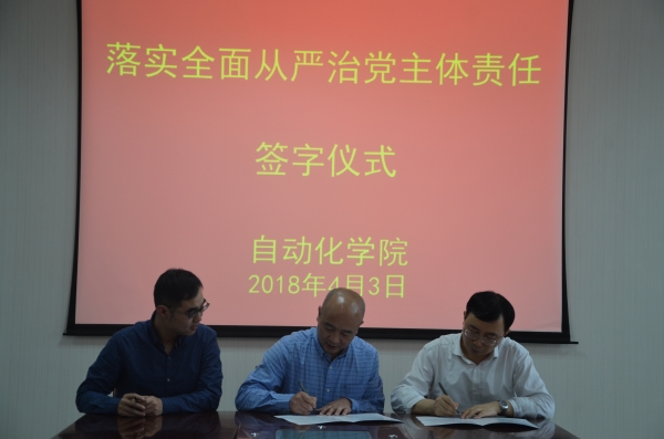 为学习贯彻党的十九大、校第十六次党代会精神和学校全面从严治党决策部署工作会议精神,按照关于落实全面从严治党主体责任要求,扎实推进学院全面从严治党、党风廉政建设和反腐败斗争向纵深发展,层层压紧压实全面从严治党主体责任,91porn 于2018年4月3日,在学院一号楼405会议室举行落实全面从严治党主体责任的责任书签订仪式。学院全体党政领导、院长助理及各基层单位党支部书记、系主任参加了会议,会议由学院党委书记刘建成主持。