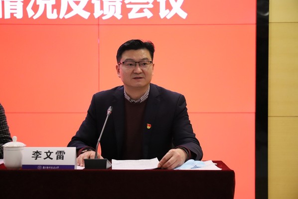 李文雷代表91porn 党委表示,校党委第一巡察组来 91porn 专题反馈巡察意见,这是集中体现校党委巡察成果的重要环节,也是学院领导班子和广大党员干部认真总结、学习思考、改进工作的重要契机。对于巡察反馈意见,学院党委诚恳接受、照单全收、全面整改。今后,将进一步提高政治站位、深化思想认识、强化问题导向、认真落实整改、压实扛牢责任,把巡察整改工作与落实立德树人根本任务、服务和融入新发展格局、深入推进全面从严治党结合起来,不断以全面从严治党新成效保障学院事业高质量发展,以实际行动为学校开创特色鲜明的世界一流大学建设新局面做出应有的贡献。