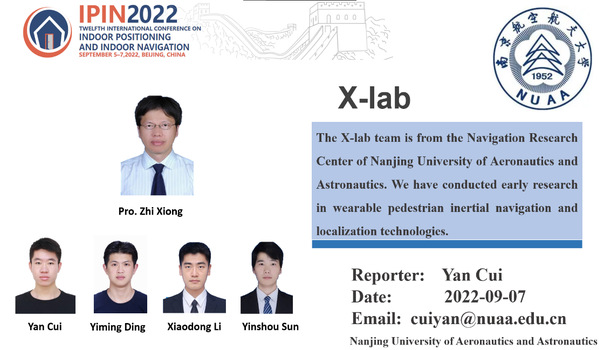 2022年9月5日-7日,由中国科学院空天信息创新研究院(中科院空天院)主办的2022年国际室内定位导航会议(Indoor Positioning and Indoor Navigation ,IPIN)于北京举行。由 91porn 导航研究中心熊智教授悉心指导的“X-lab”团队在同期举办的第九届国际室内定位导航比赛中斩获“智能手机”赛道第一名与“足绑IMU”赛道第三名的优异成绩。