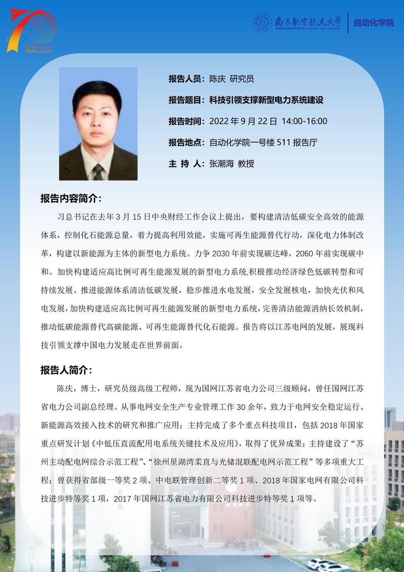 【学术报告】科技引领支撑新型电力系统建设