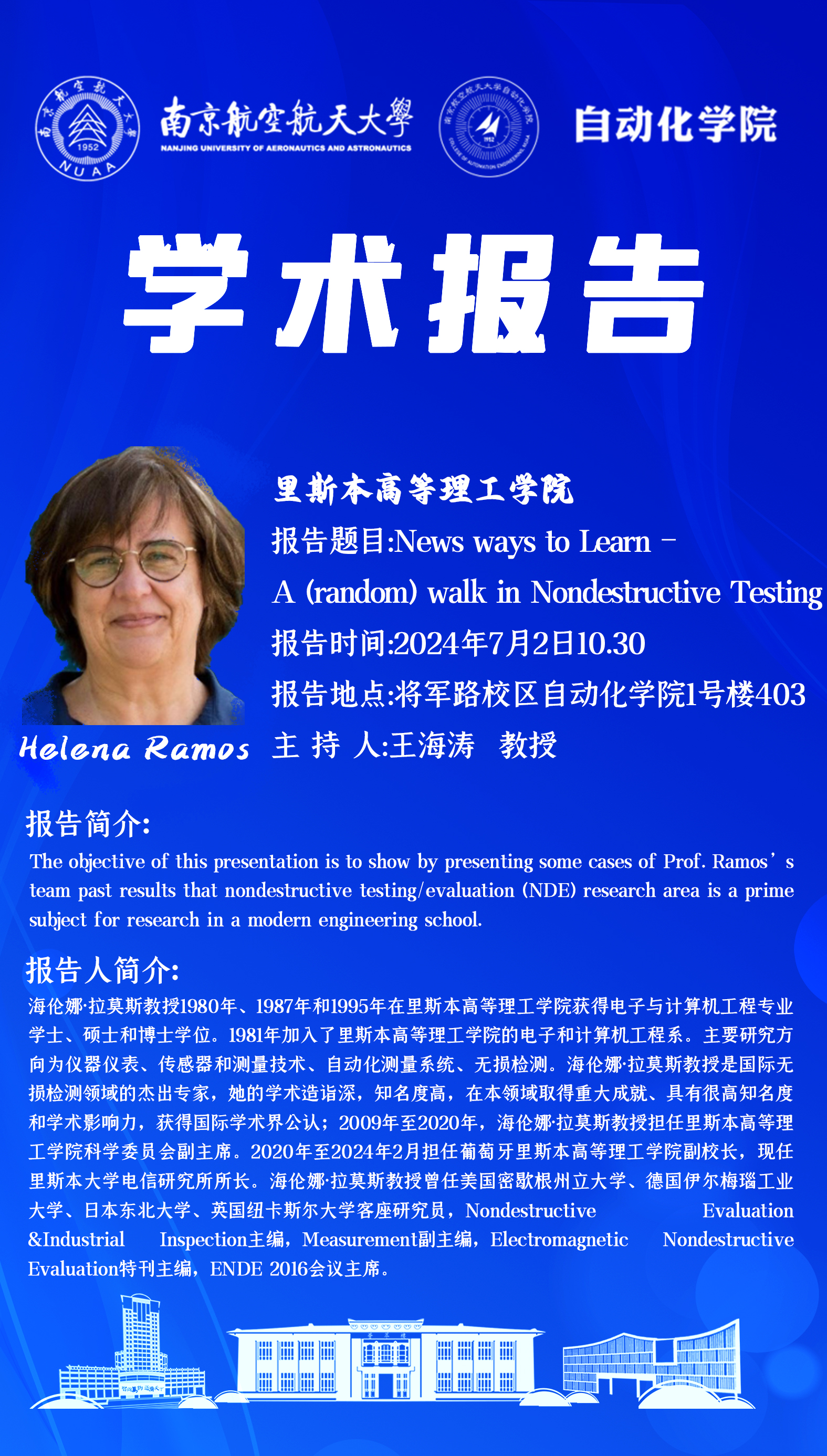 【学术报告】Helena Ramos:News ways to Learn - A (random) walk in Nondestructive Testing