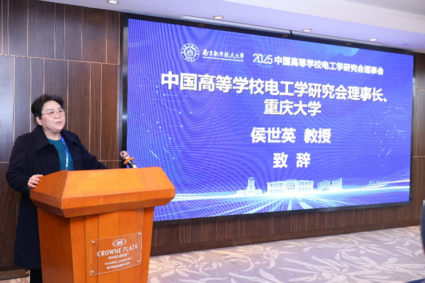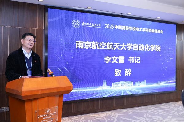 随后,中国高等学校电工学研究会理事长、重庆大学侯世英教授致辞中指出,电工学作为工科基础课程之一,在推动国家科技创新、服务新工科建设方面发挥着关键作用。理事长高度评价了南航在电气工程等领域的深厚积淀,并向长期关心和支持研究会发展的同仁们表示感谢。