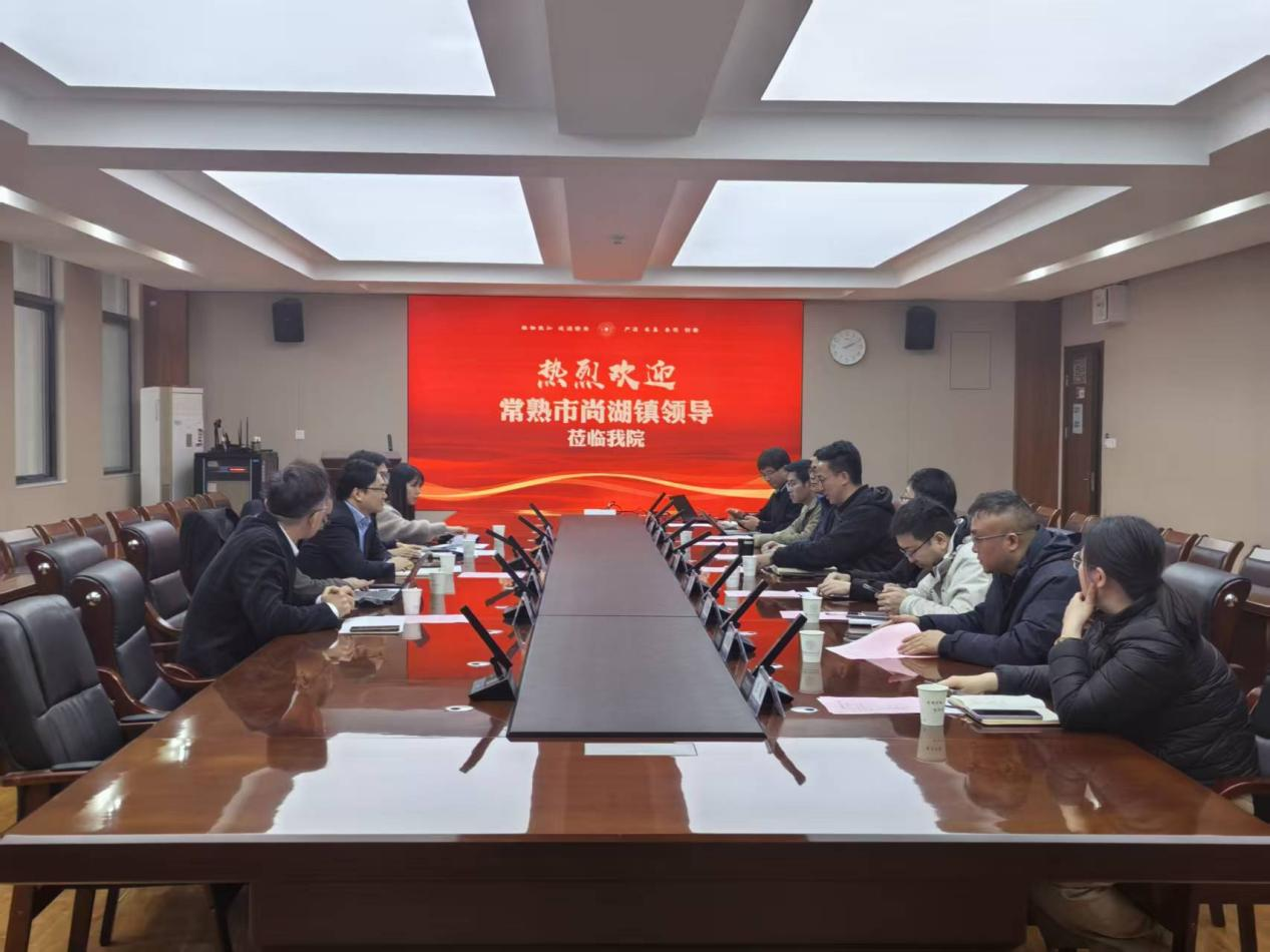 12月10日,常熟市尚湖镇党委书记金晓、副镇长王平平一行 5 人莅临91porn ,就技术合作、人才引进等方面开展交流调研。91porn 副院长魏佳丹、各基层领导及教师代表出席会议。